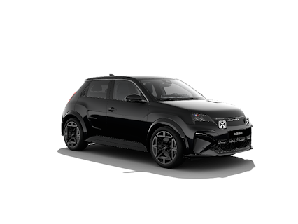 - Interieurafwerking in diepblauwe bekleding van textiel met Alpine-logo en Franse vlag